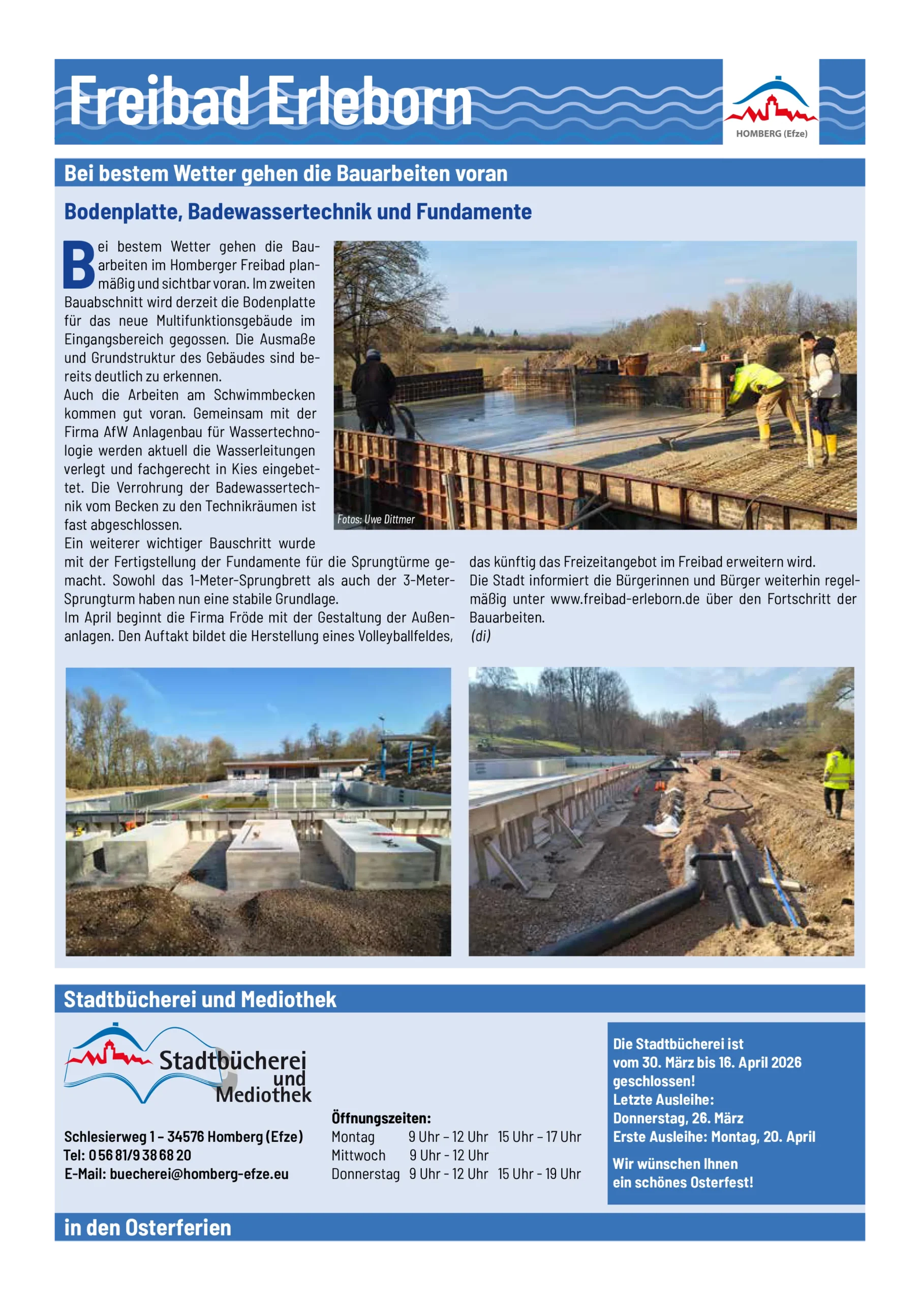 Bei bestem Wetter gehen die Bauarbeiten voran Bodenplatte, Badewassertechnik und Fundamente – KW 14/2026